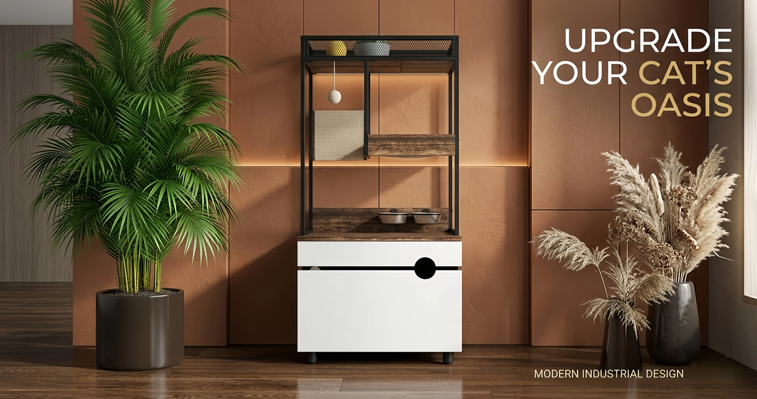 Cat Litter Box Enclosures with Cat Tree Tower, Cat Furniture ,Cat Cabinet