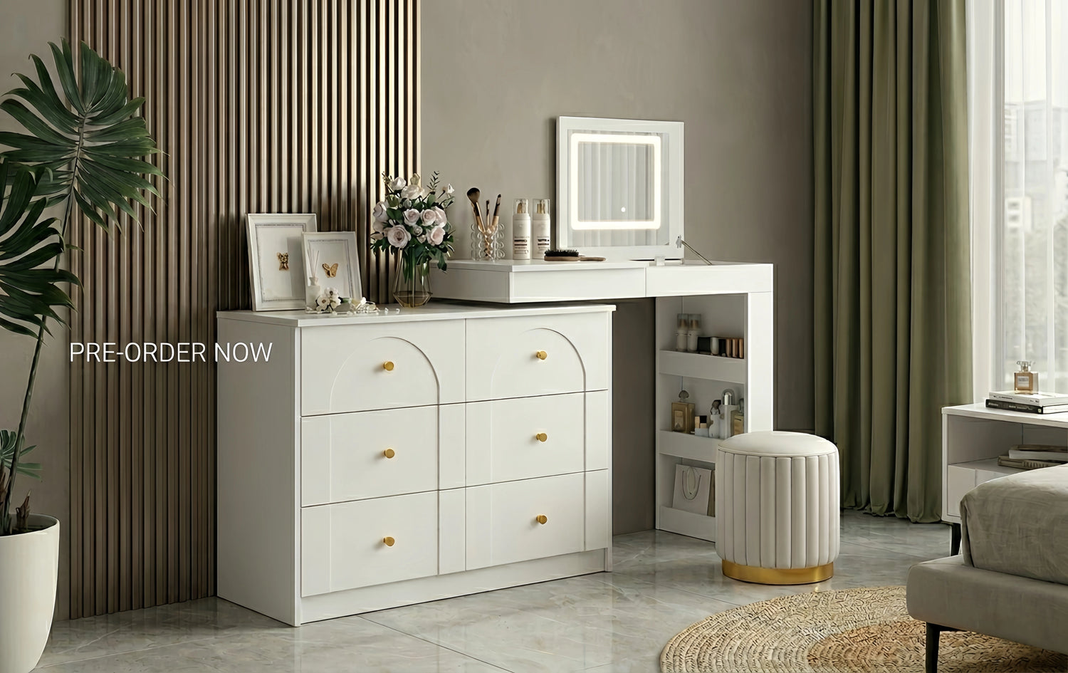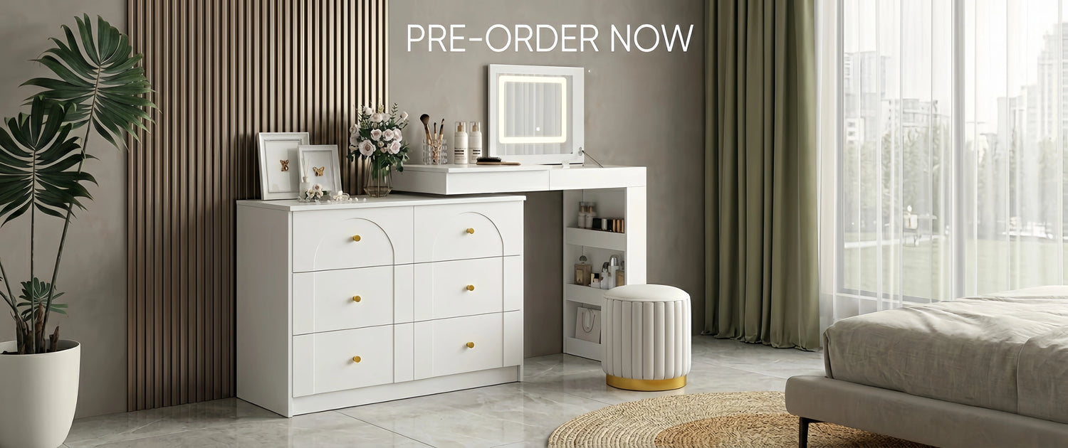 Walnut Vanity Desk w/ LED Mirror & 7-Drawer Storage(Pre-order: Ships May 20)